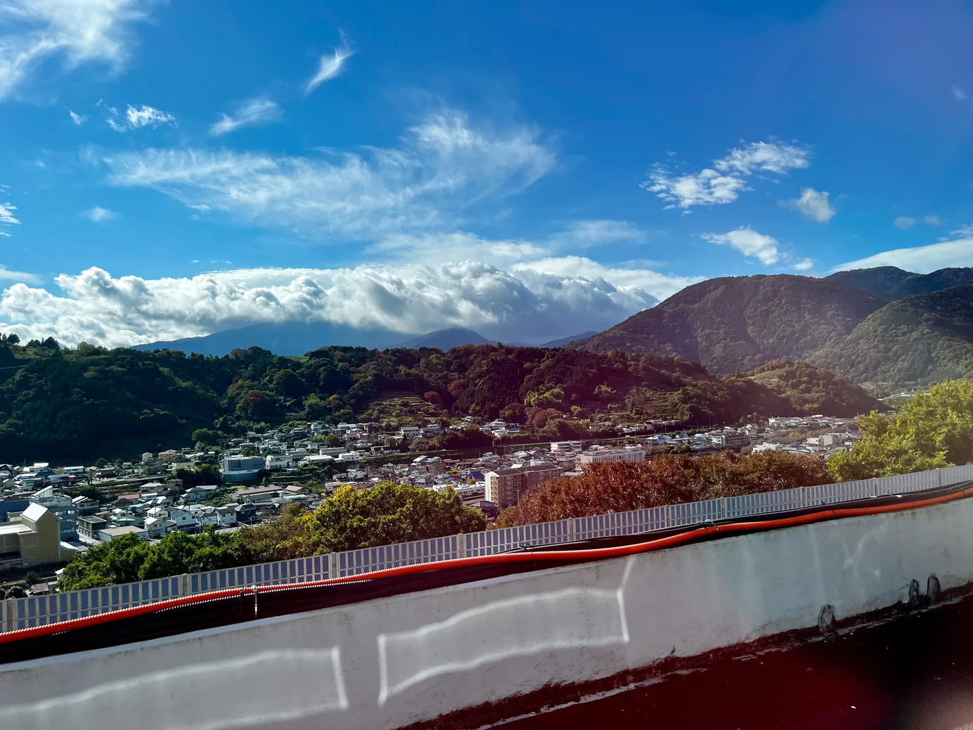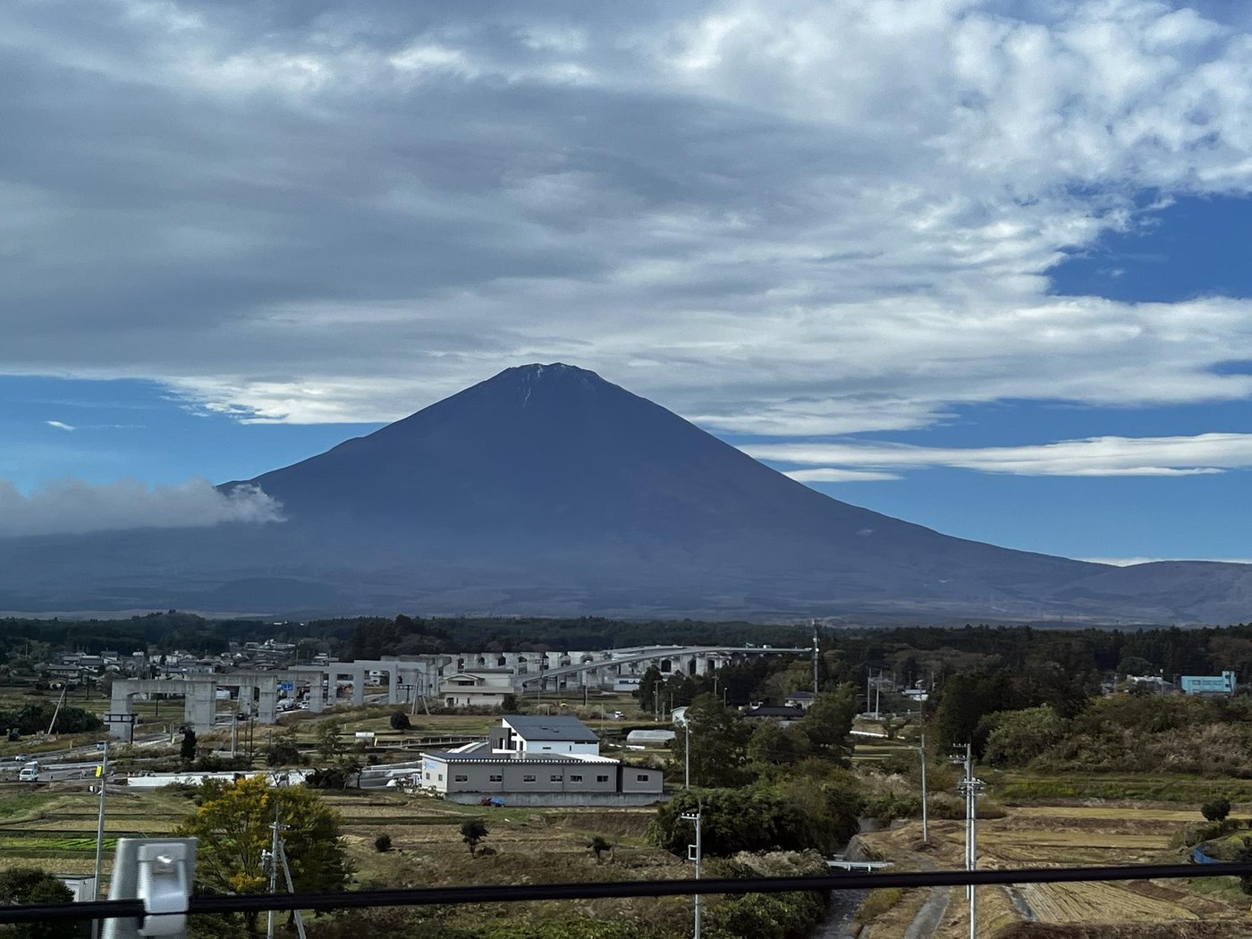 Красивые виды на Фудзи и прочие горы были всю дорогу. Очень красиво смотрелось, как Фудзи становится всё больше и больше - мы хоть и ехали вдоль, но по чуть-чуть приближались таки ближе к ней.