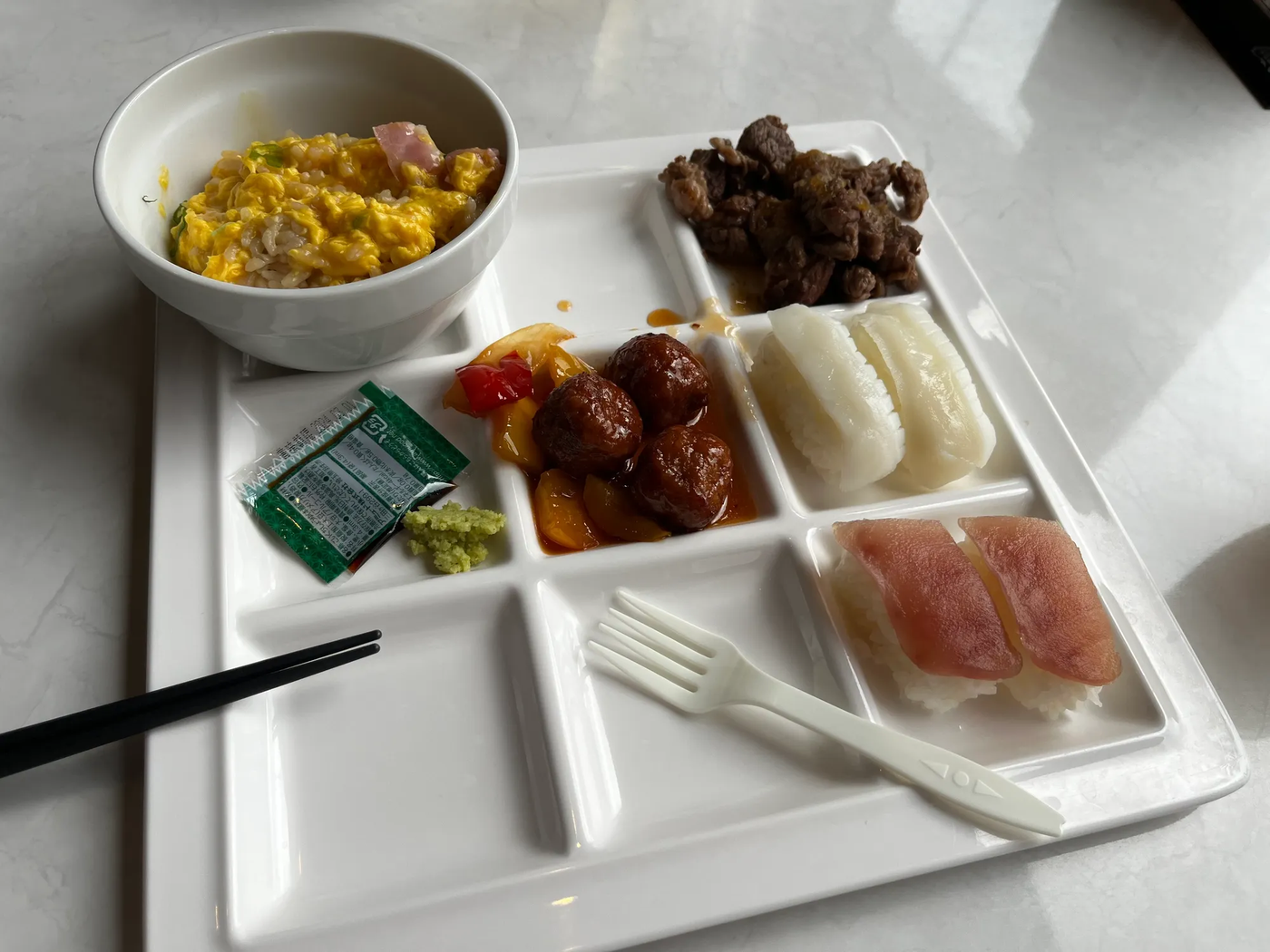 Сперва нас отвезли в город Готэмба, префектура Шизуока - там нас ждал первый вид на Фудзи и шведский стол в довольно большом ресторанчике.