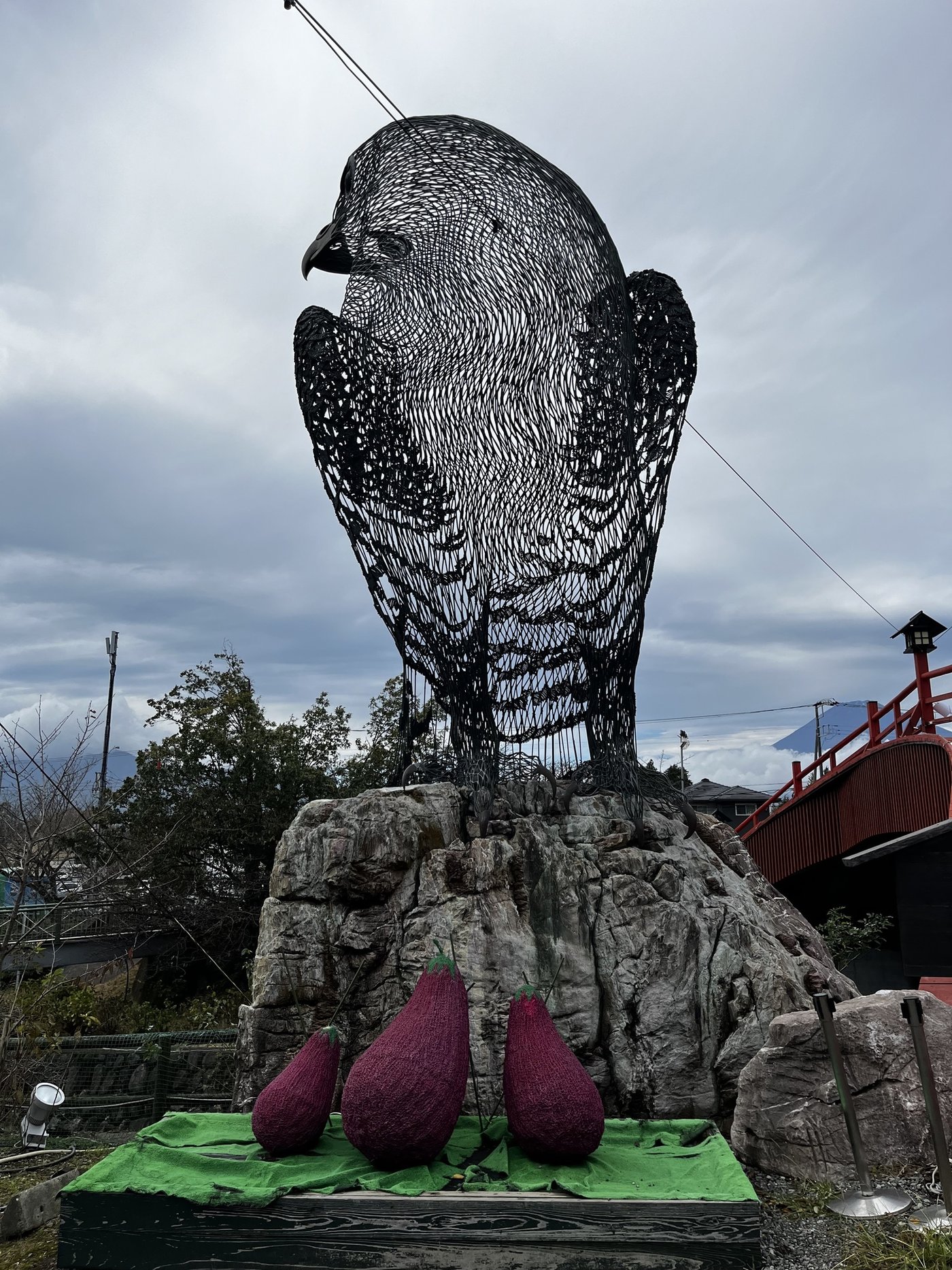 Ну и здесь же нас ждала большая железная сова (почему? не знаю) и первый вид на Фудзи. Для меня действительно первый - за все (чуть более) пол года что я тут - целиком её увидел только здесь. Правда, было аномально тепло для осени - практически лето - и даже Фудзи стояла без своей снежной шапки, отчего выглядит не так величественно, как её привыкли видеть на фотографиях.