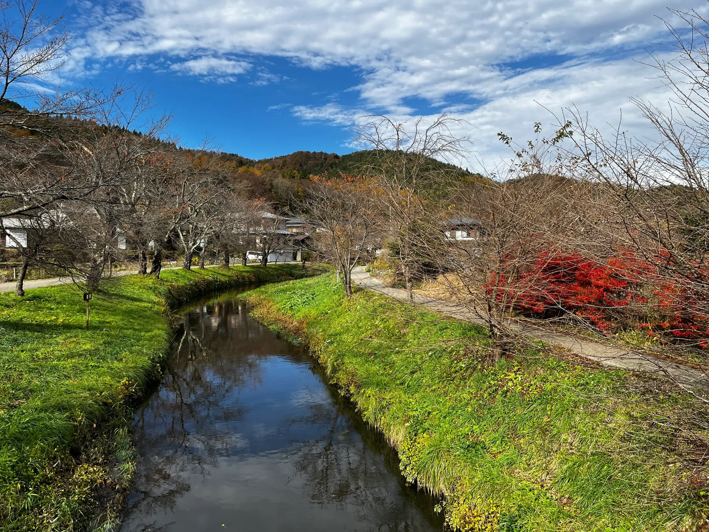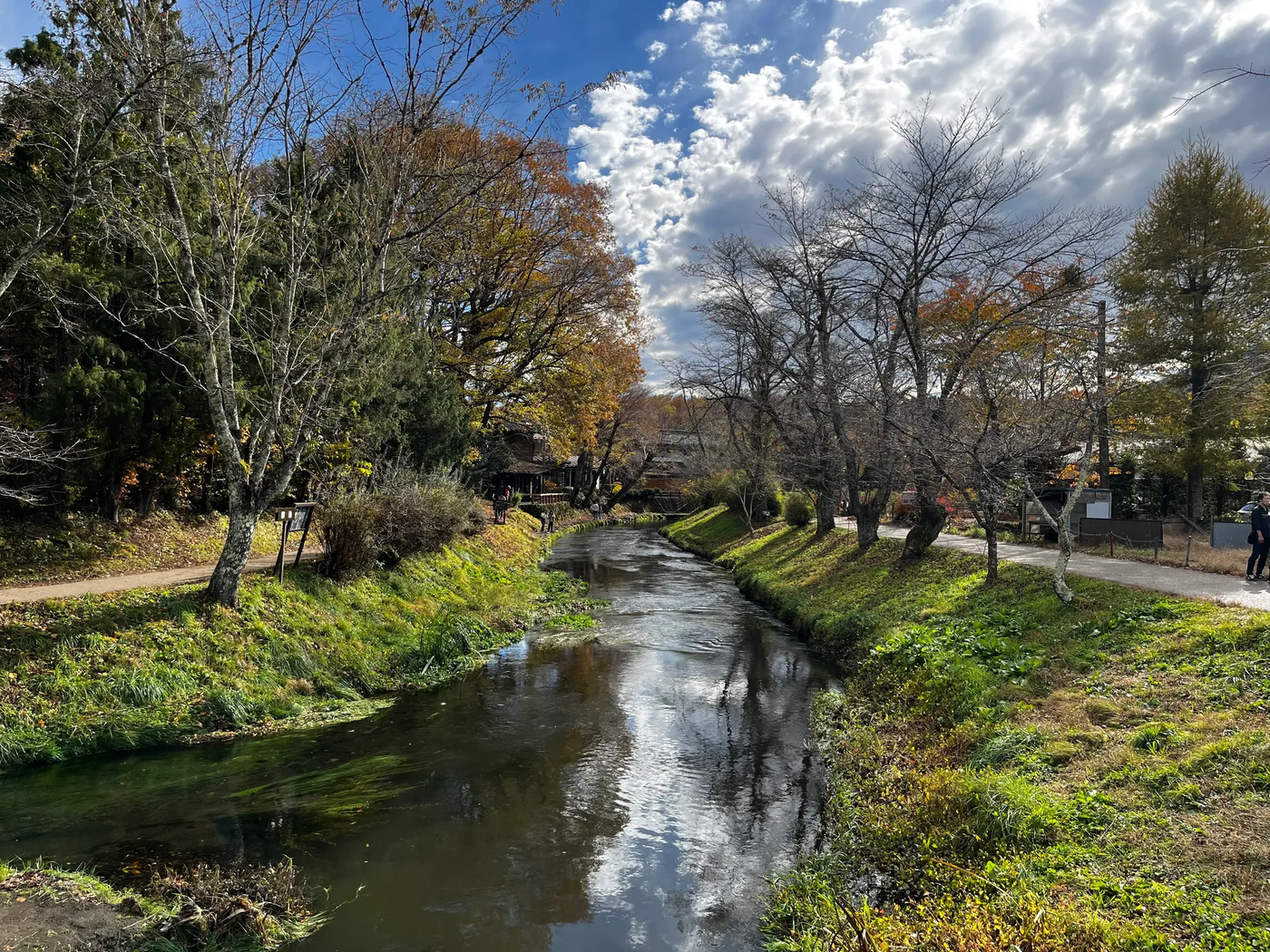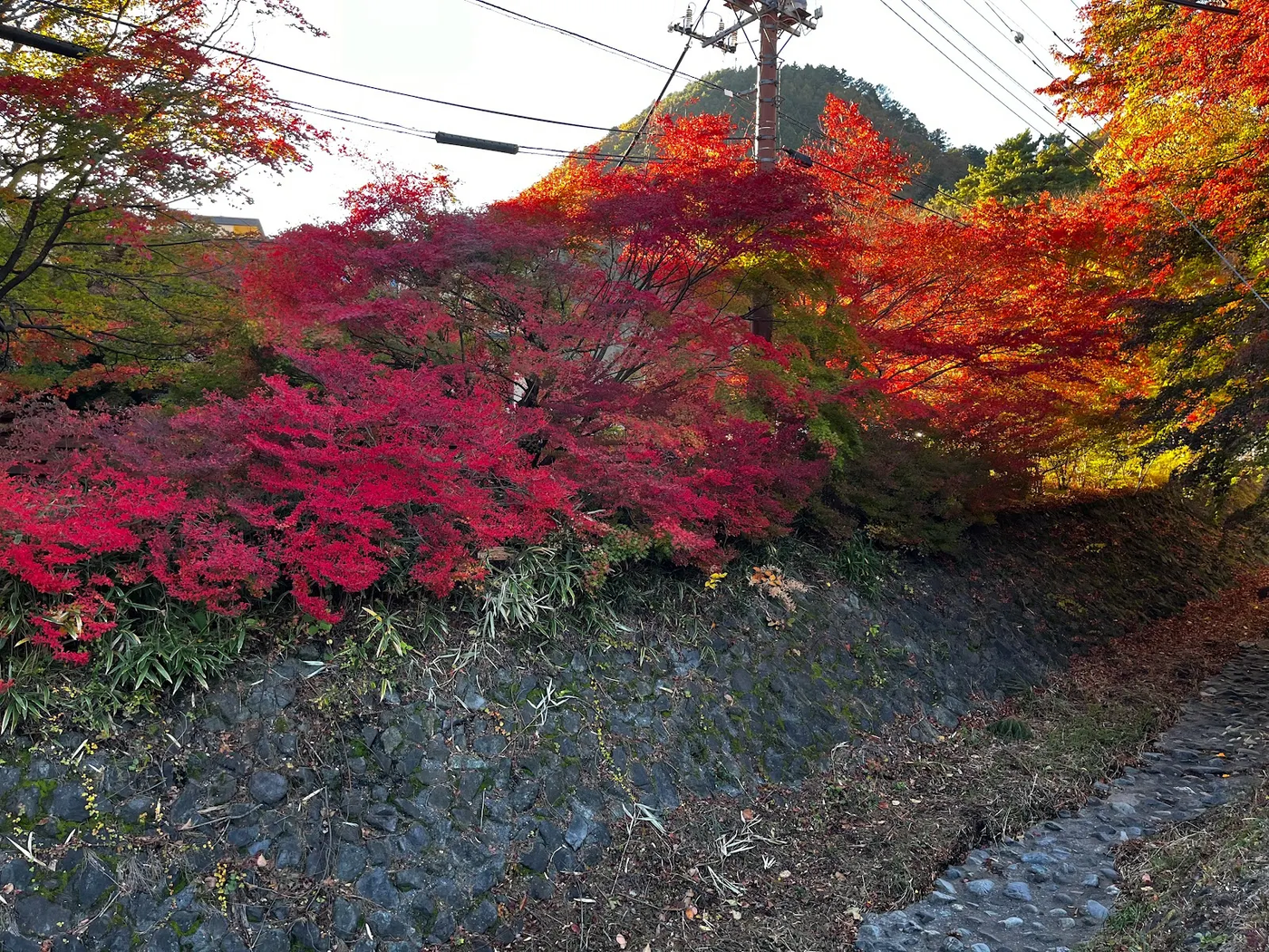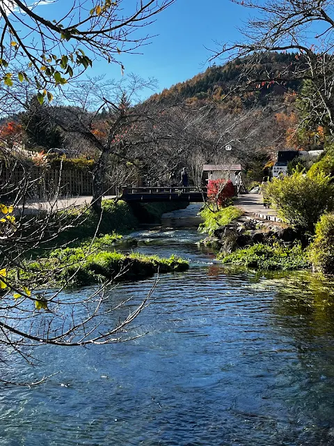 Возле озера Кавагучи специально высажены те самые краснеющие японские клёны. Берега вдоль впадающей в озеро реки даже названы "коридором момидзи". Наверное, тут должно быть очень красиво, в нормальный год с нормальной осенью. Река, кстати, тоже куда-то делась...