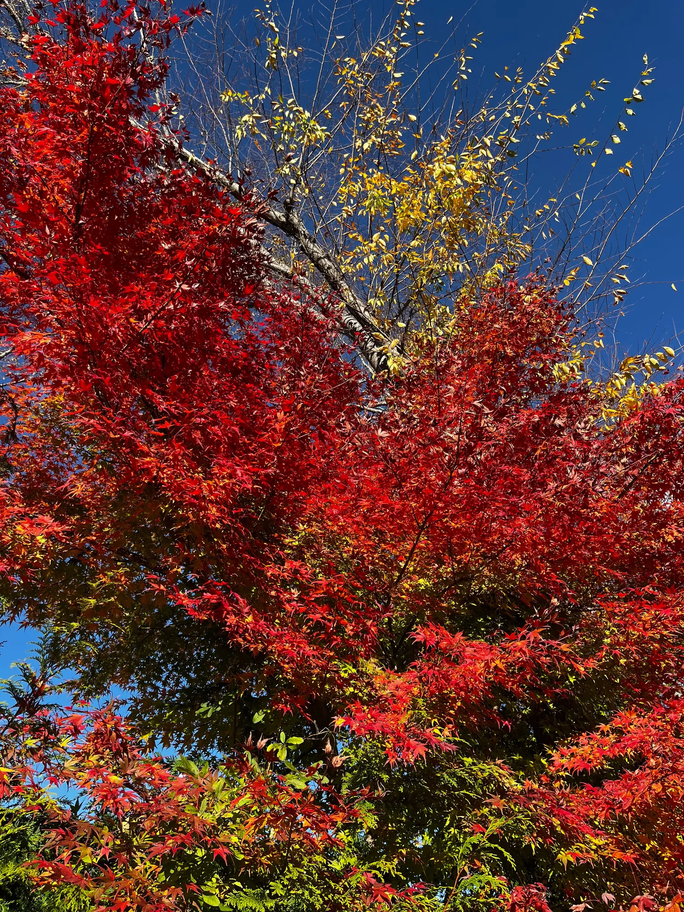 Любование красными клёнами - оно же момидзи - традиционное осеннее развлечение. Однако, в этом (теперь уже - в прошлом) году осень выдалась аномально тёплая, и к моменту, когда момидзи должно было быть в самом разгаре, по факту клёны только-только начинали краснеть...